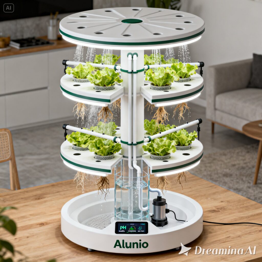 Alunio empowers communities to grow fresh, nutritious food anywhere, at any time, combining elegant modular systems with the Alunio Growers app to make every harvest effortless, sustainable, and shared.